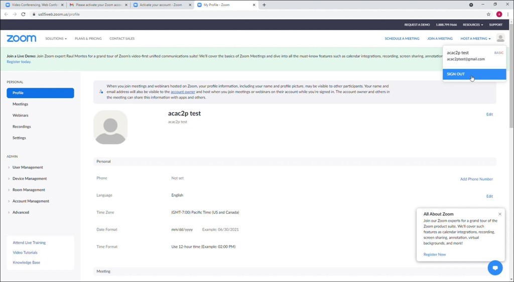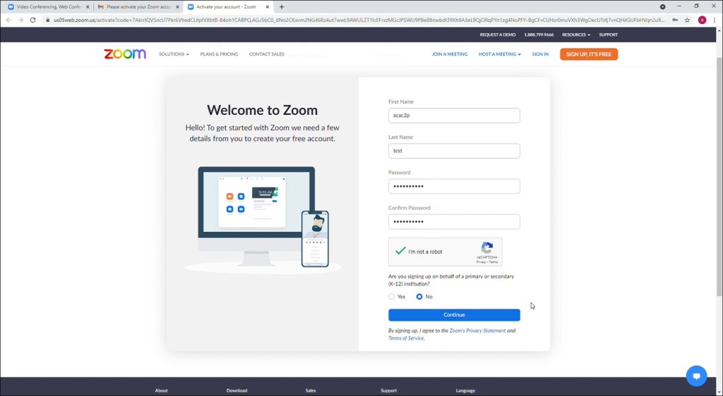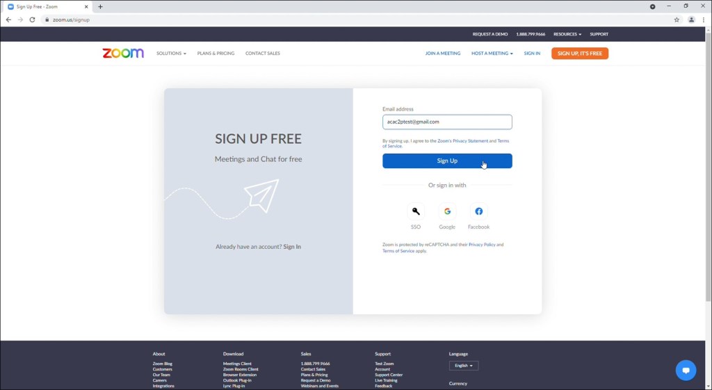 Record the email and password for this new Zoom account as Zoom will prompt you for this information when logging into the Global Meeting.